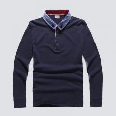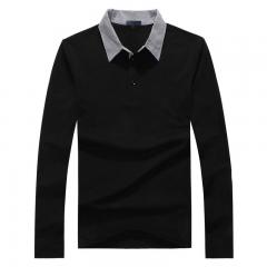 黑色男款長袖POLO衫 珠地精梭純棉材質