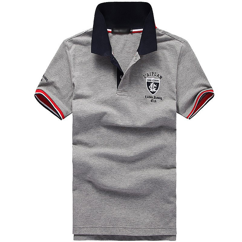 花灰色衣領袖口撞色,翻領短袖T恤衫,時尚款式定制,精梭純棉品質