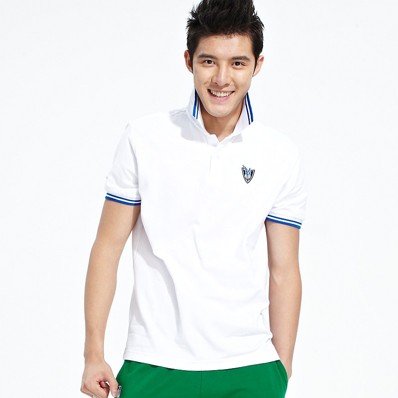 白色領(lǐng)袖撞色,男女時(shí)尚T恤款式定制,可刺繡公司標(biāo)志