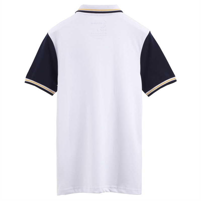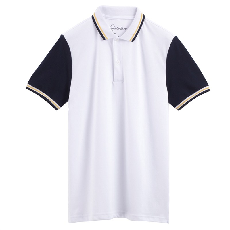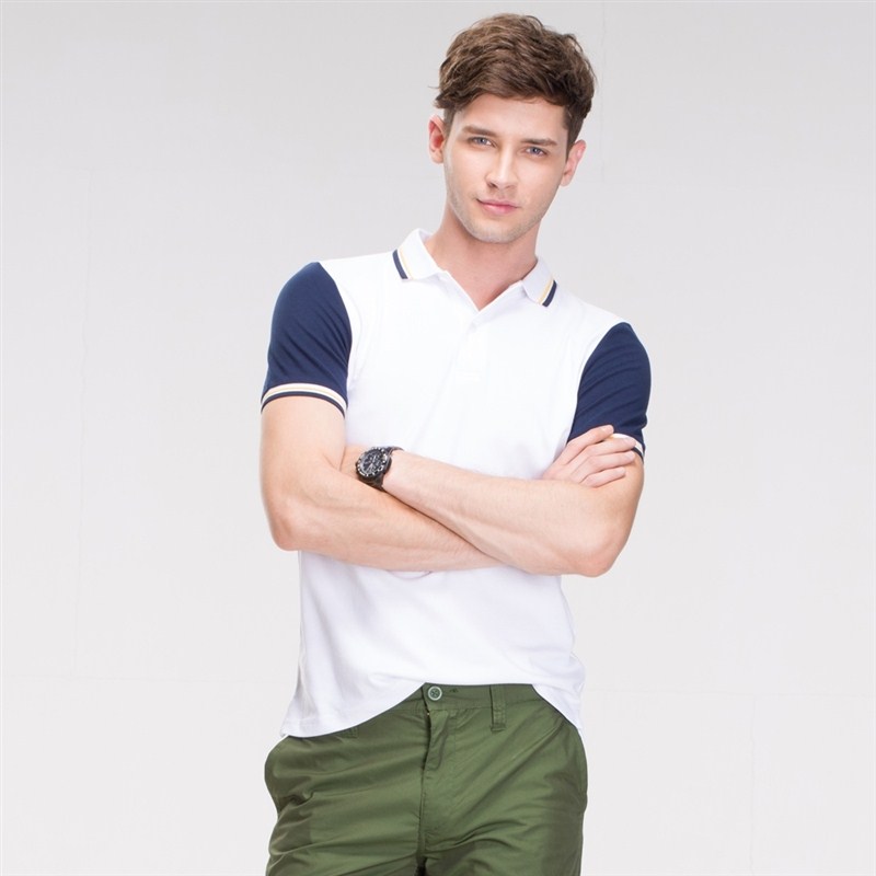 白色領(lǐng)袖撞色,男女時尚T恤款式定制,可刺繡公司標(biāo)志
