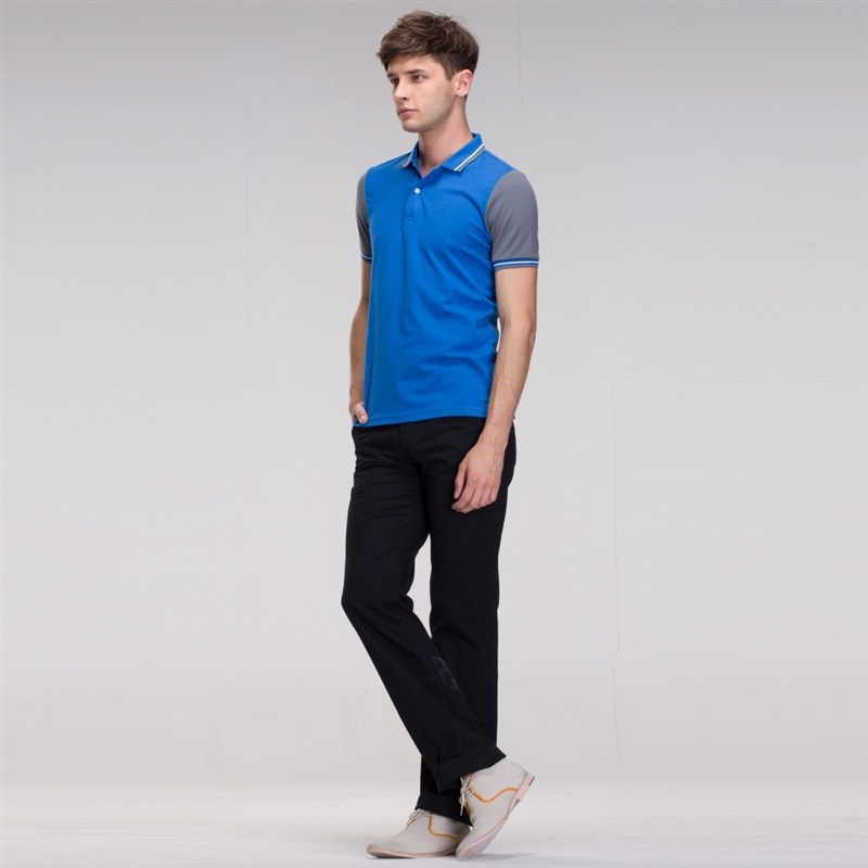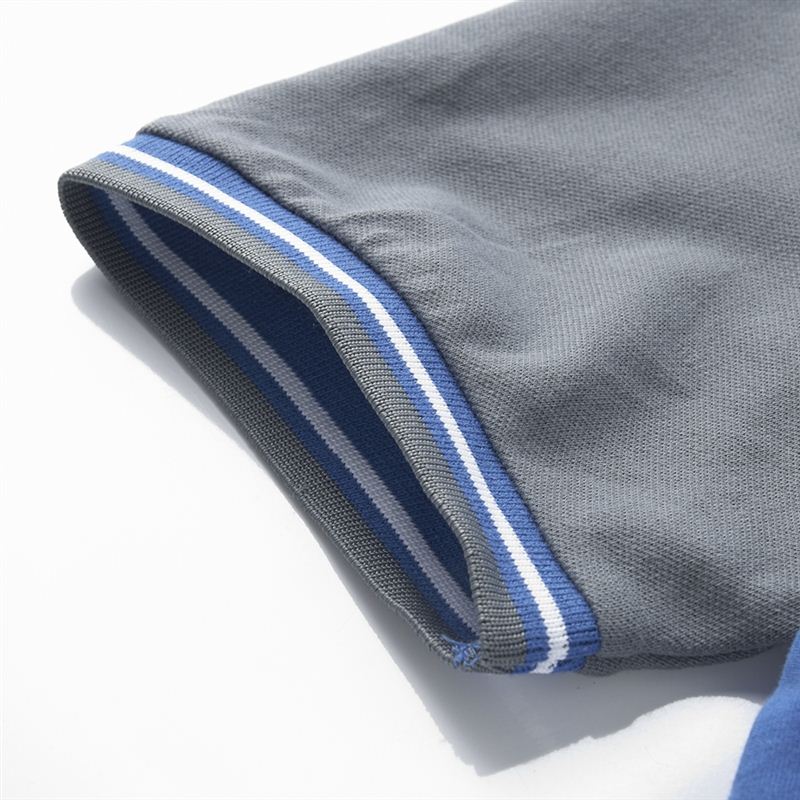 花灰色衣領(lǐng)袖口撞色,翻領(lǐng)短袖T恤衫,時尚款式定制,精梭純棉品質(zhì)