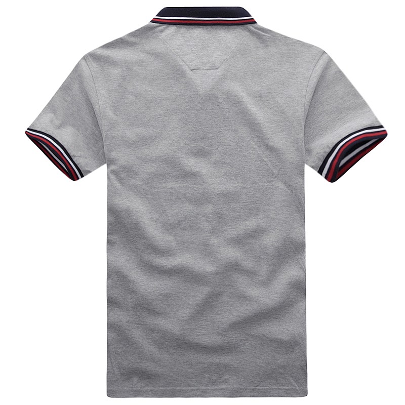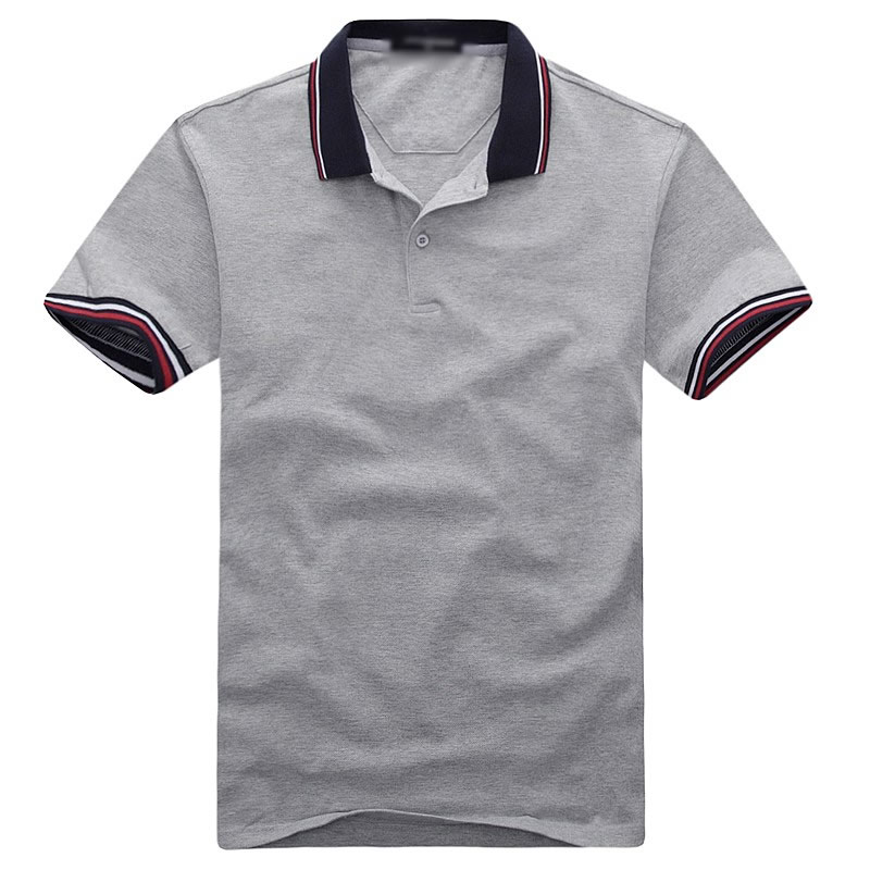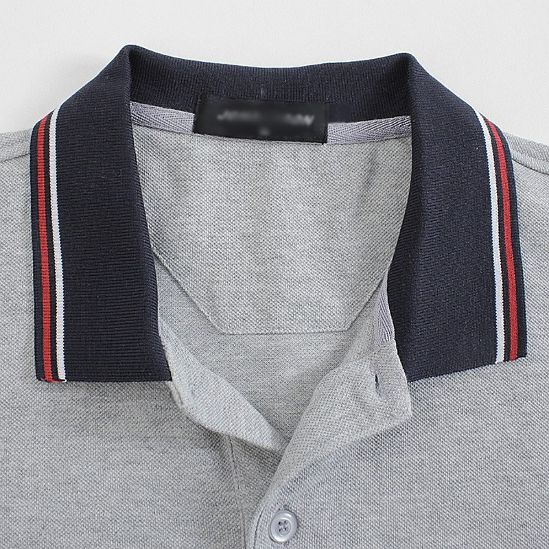 花灰色衣領袖口撞色,翻領短袖T恤衫,時尚款式定制,精梭純棉品質