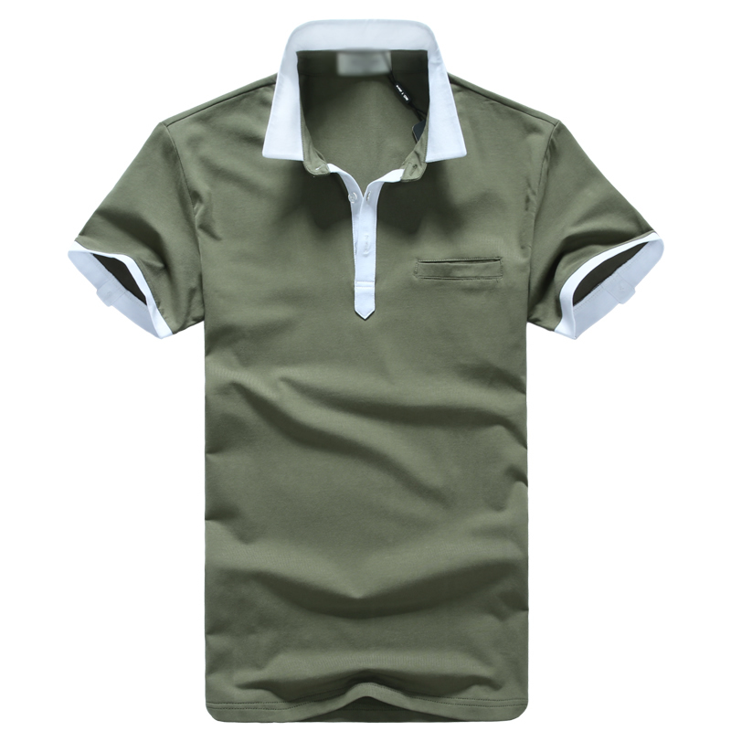 花灰色衣領袖口撞色,翻領短袖T恤衫,時尚款式定制,精梭純棉品質