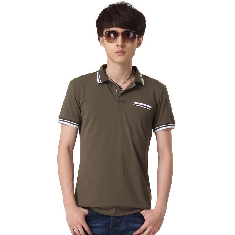 花灰色衣領(lǐng)袖口撞色,翻領(lǐng)短袖T恤衫,時(shí)尚款式定制,精梭純棉品質(zhì)