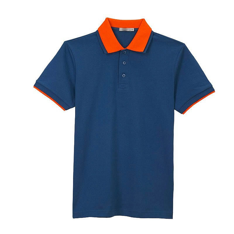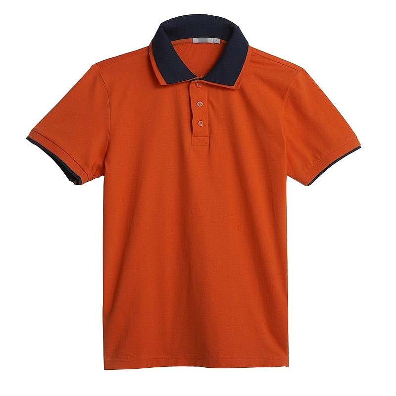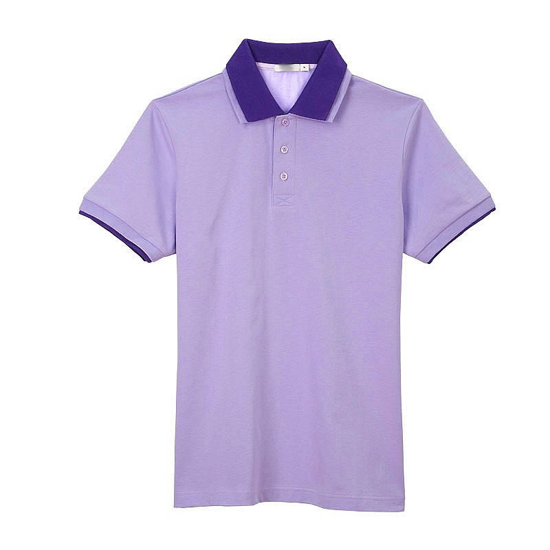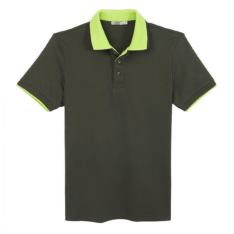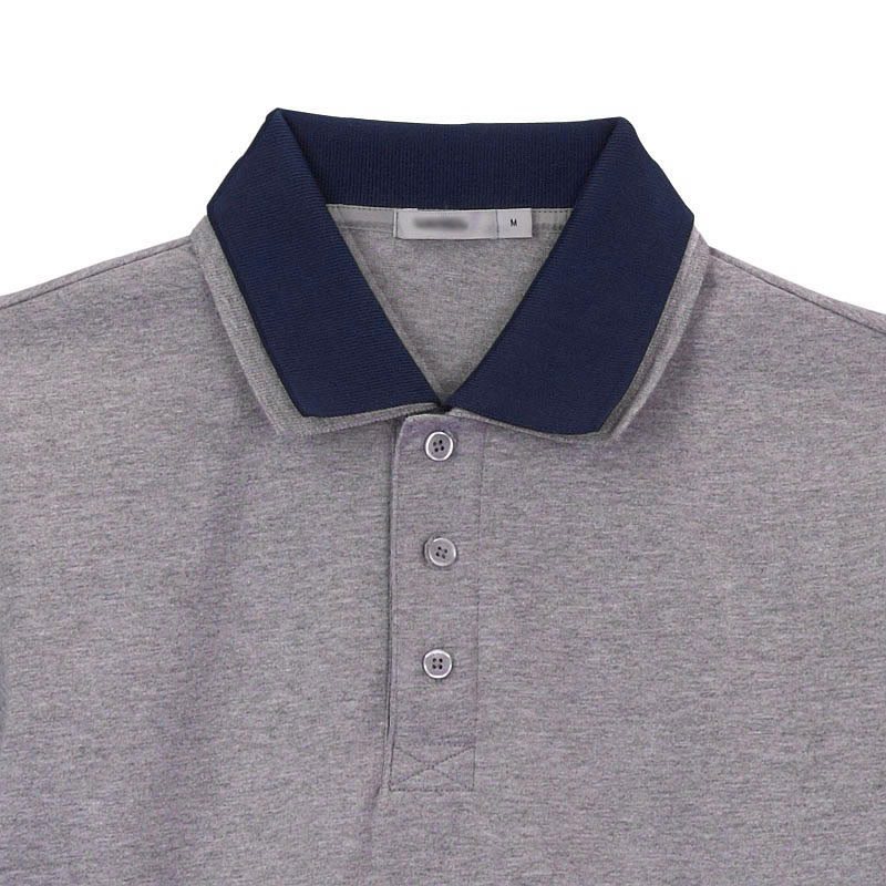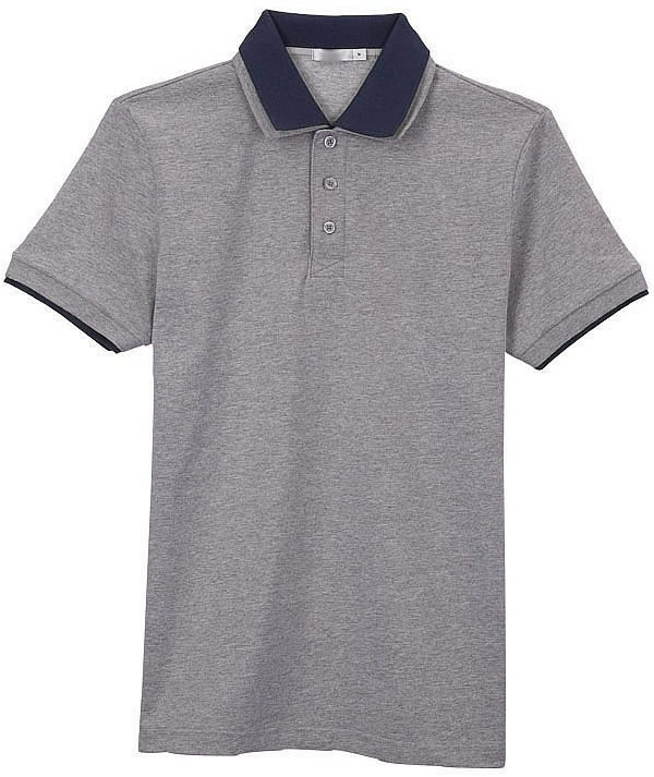 花灰色衣領袖口撞色,翻領短袖T恤衫,時尚款式定制,精梭純棉品質
