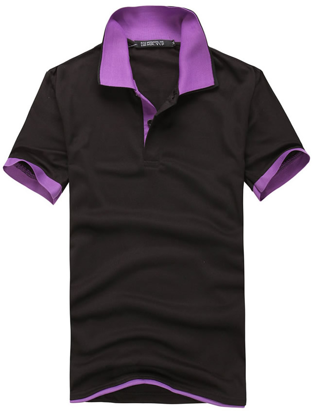 花灰色衣領(lǐng)袖口撞色,翻領(lǐng)短袖T恤衫,時尚款式定制,精梭純棉品質(zhì)