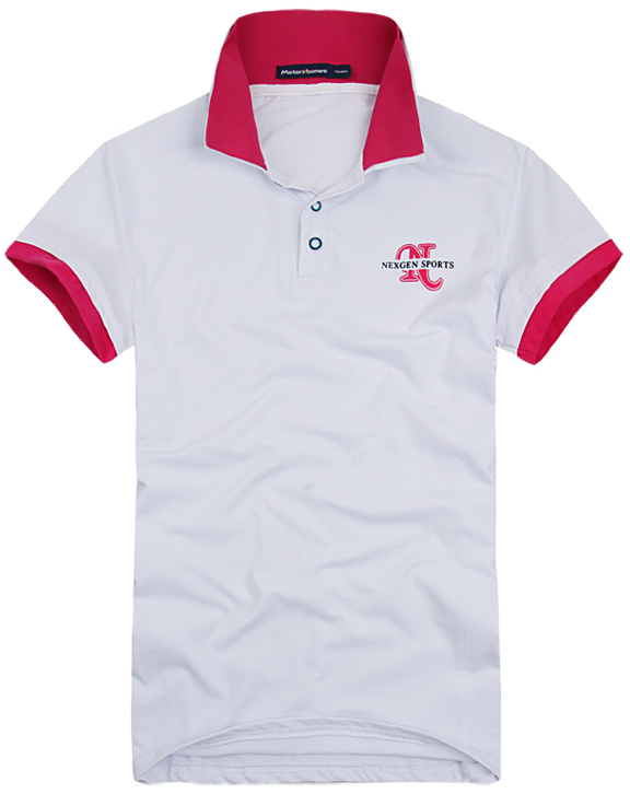 白色領(lǐng)袖撞色,男女時尚T恤款式定制,可刺繡公司標志