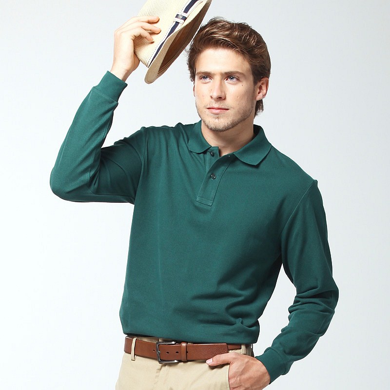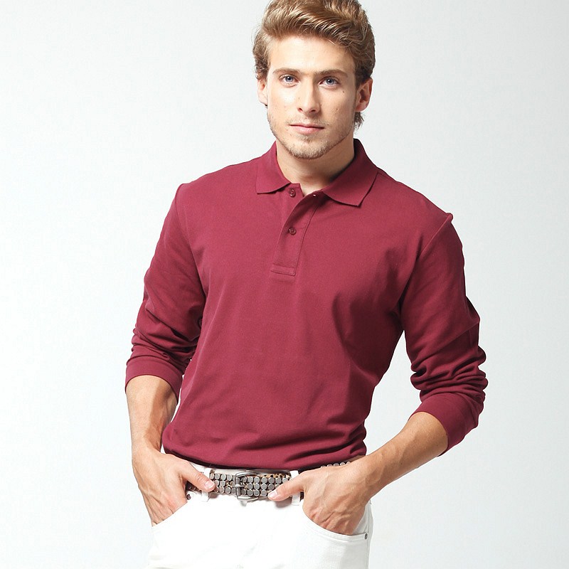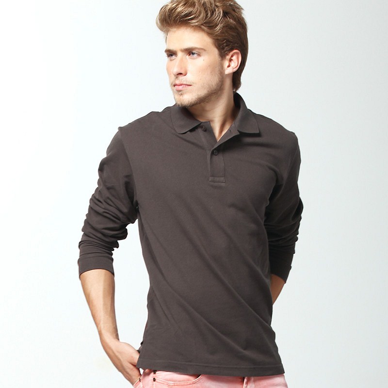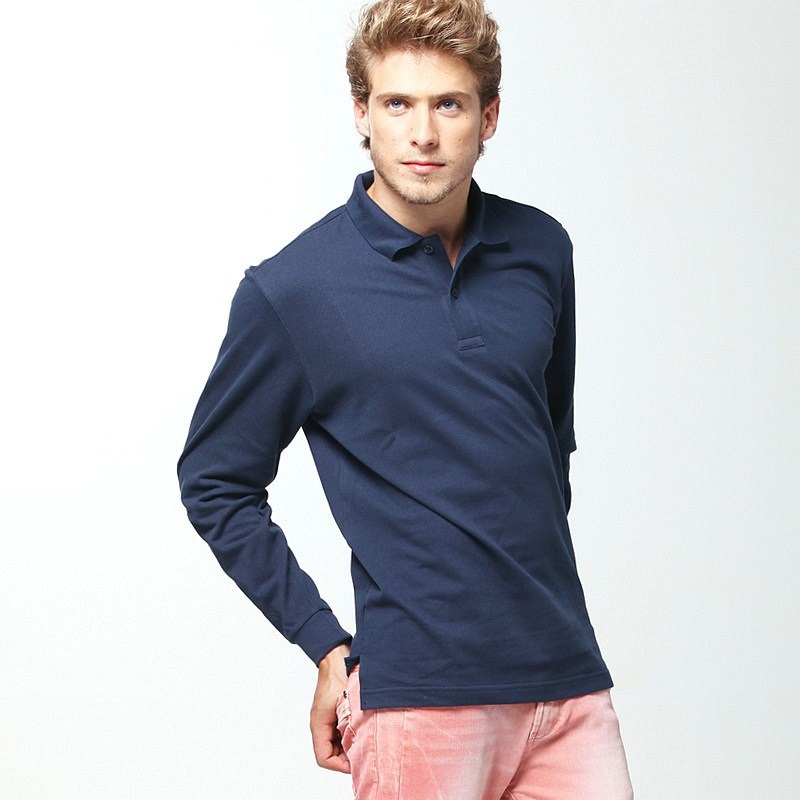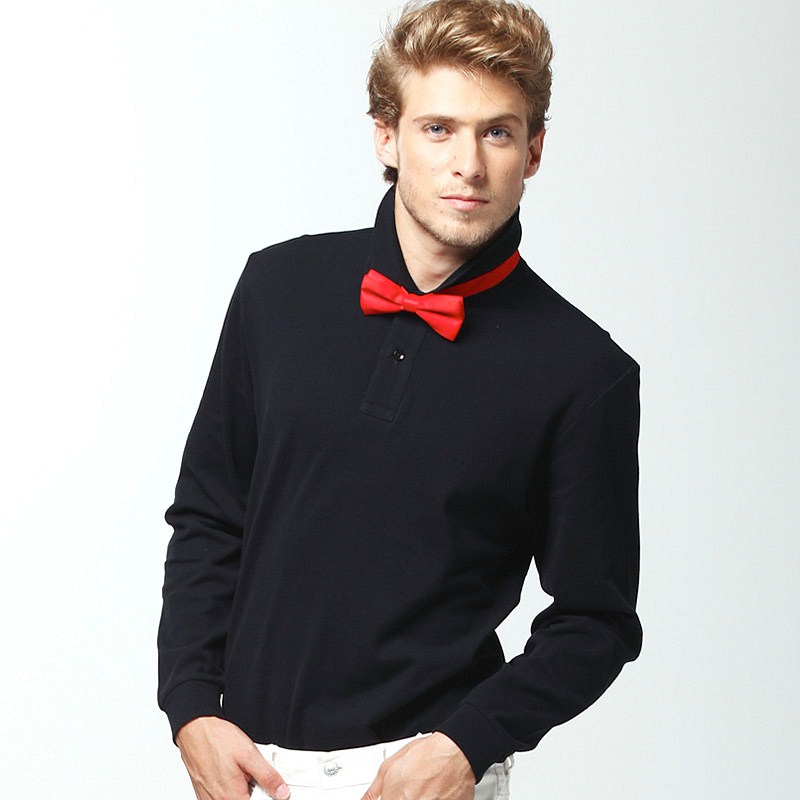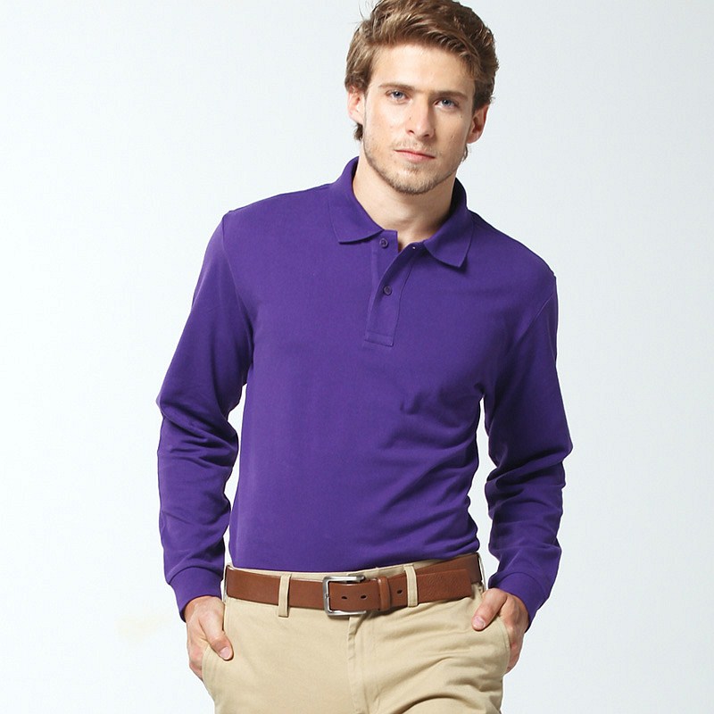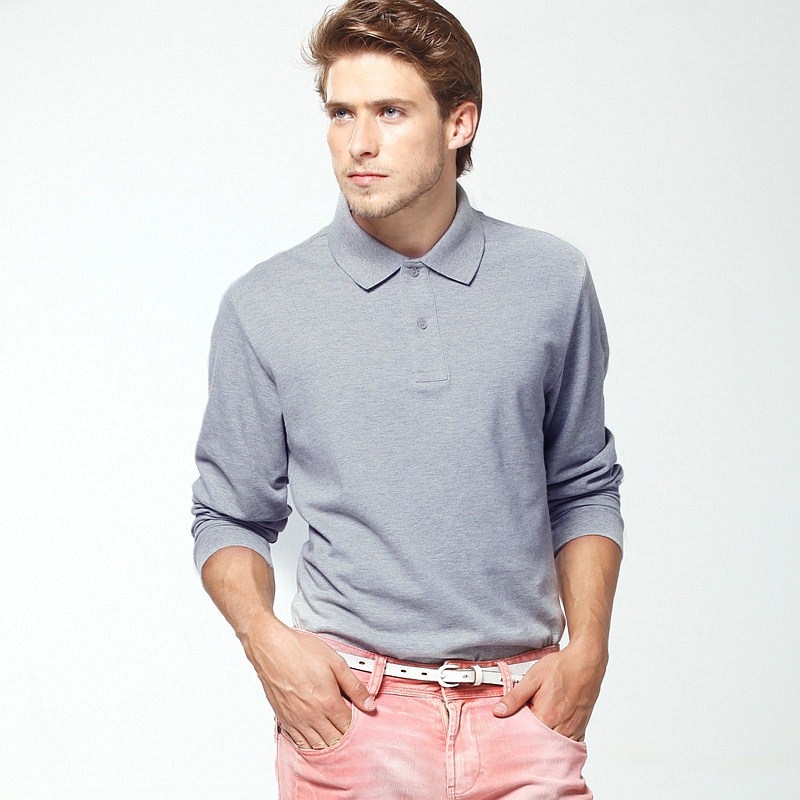 翻領長袖T恤衫,純色款式定制,經典男女款式