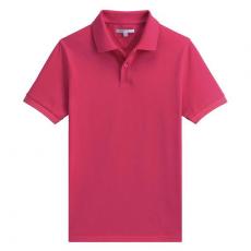 大紅色珠地純棉POLO衫,領(lǐng)袖間條撞色,門襟撞色男女款定制