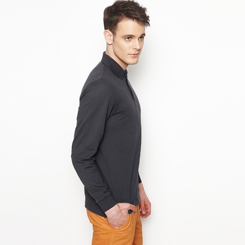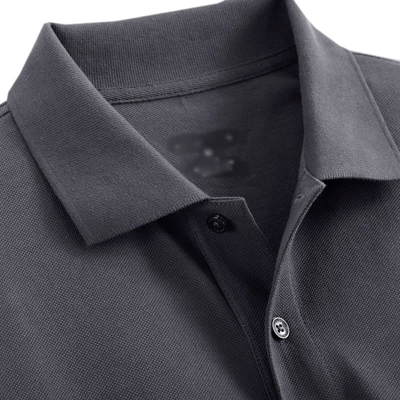 > 深灰色長袖翻領T恤衫免費提供繡花服務