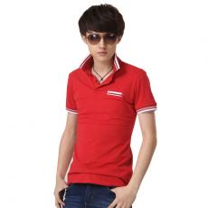 大紅色男款短袖時尚T恤衫 公司團體定做