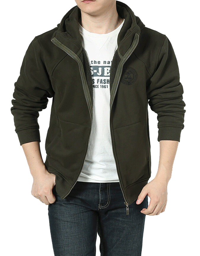 > 時尚軍綠色連帽開衫衛(wèi)衣