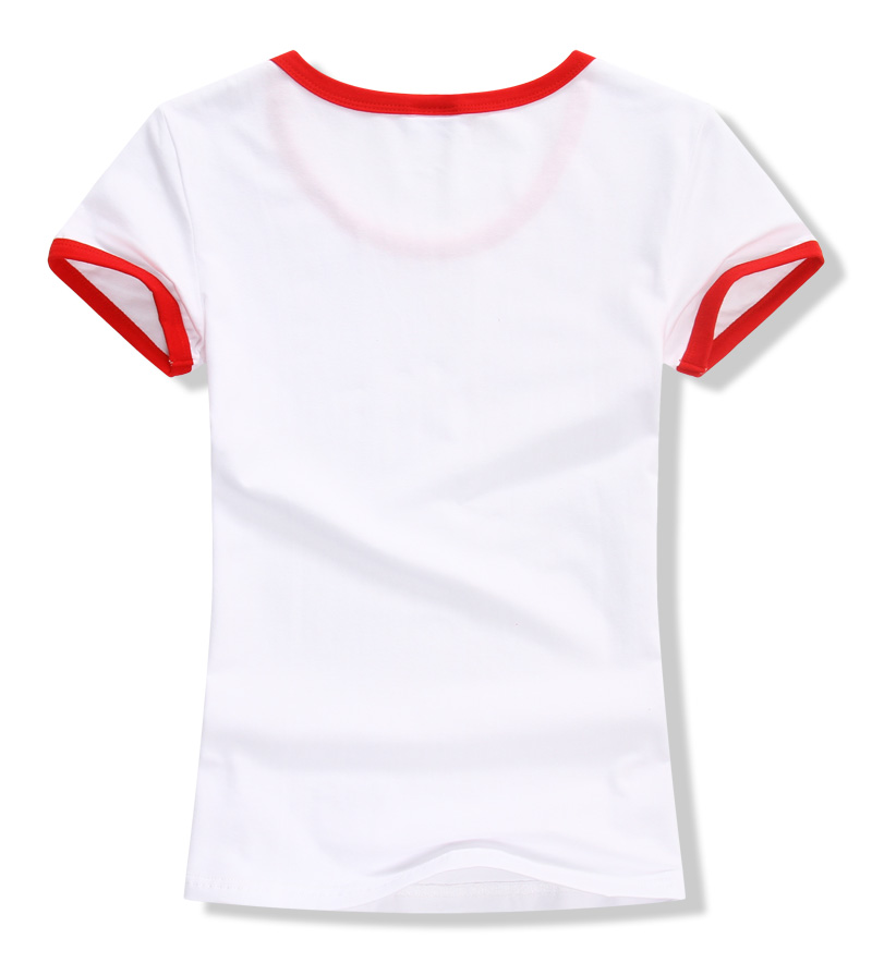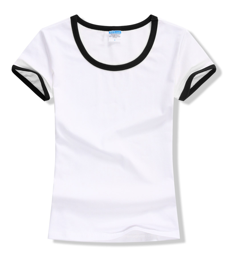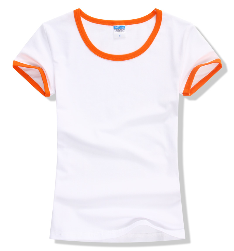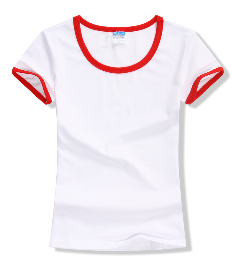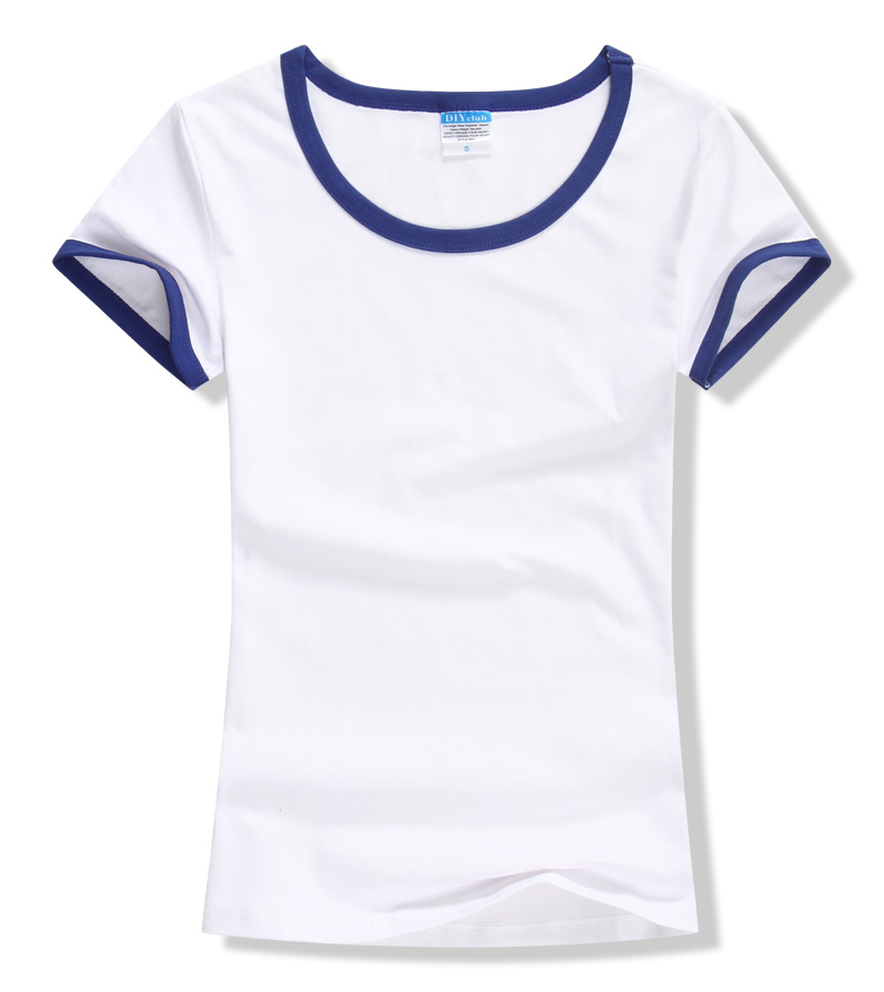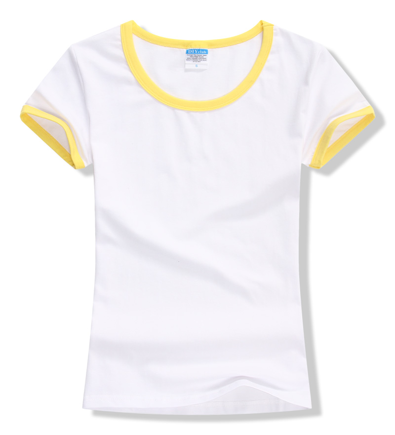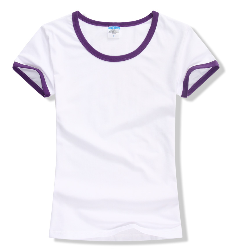 > 女裝圓領短袖T恤衫,領袖撞色款式,7個顏色現貨T恤衫批發