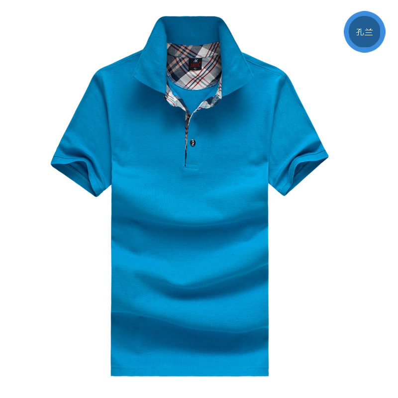 > 翻領短袖t恤衫,襯衫格子衣領定制,幾十個顏色可選,刺繡企業logo