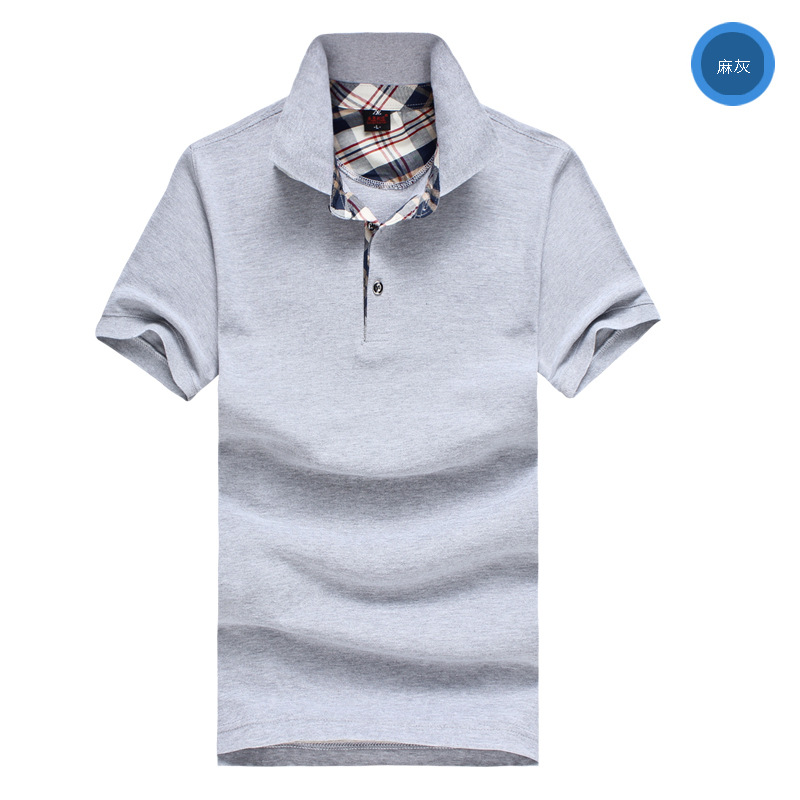 花灰色衣領袖口撞色,翻領短袖T恤衫,時尚款式定制,精梭純棉品質