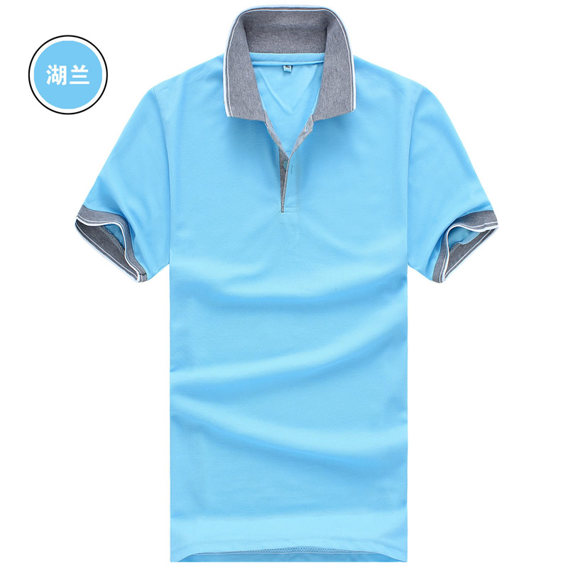花灰色衣領袖口撞色,翻領短袖T恤衫,時尚款式定制,精梭純棉品質