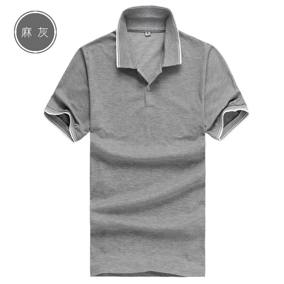 > 花灰色衣領袖口撞色,翻領短袖T恤衫,時尚款式定制,精梭純棉品質