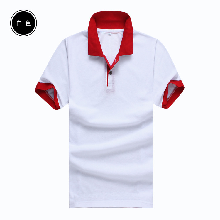 白色領袖撞色,男女時尚T恤款式定制,可刺繡公司標志