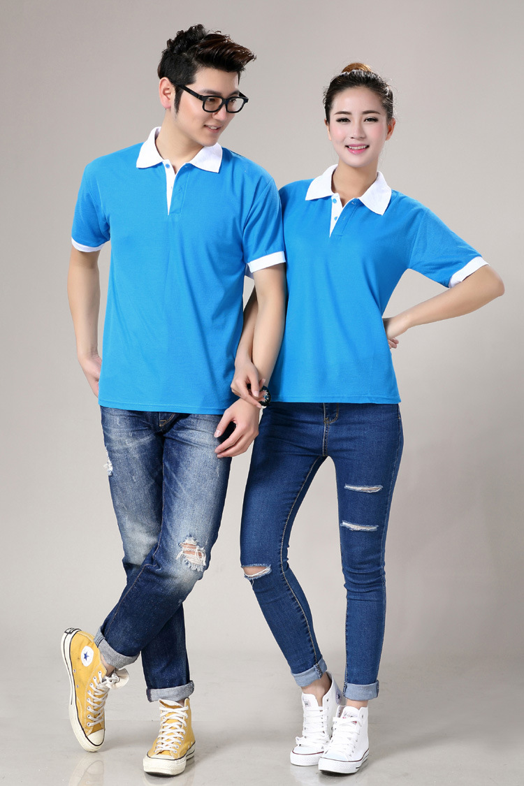 > 白色領袖撞色,男女時尚T恤款式定制,可刺繡公司標志