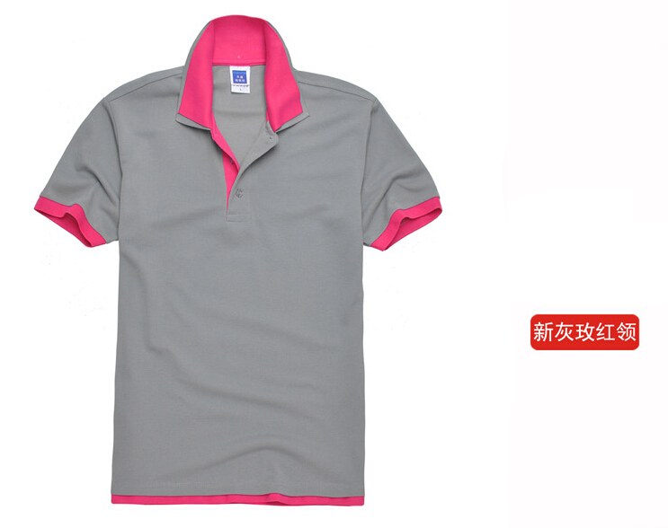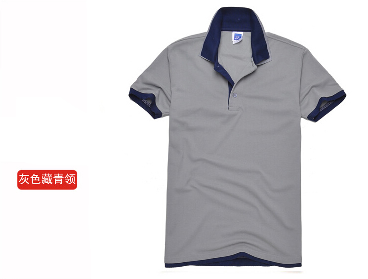 花灰色衣領袖口撞色,翻領短袖T恤衫,時尚款式定制,精梭純棉品質