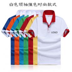 白色領袖撞色,男女時尚T恤款式定制,可刺繡公司標志