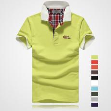綠色男款短袖精梭棉T恤衫 雙領時尚款式定做