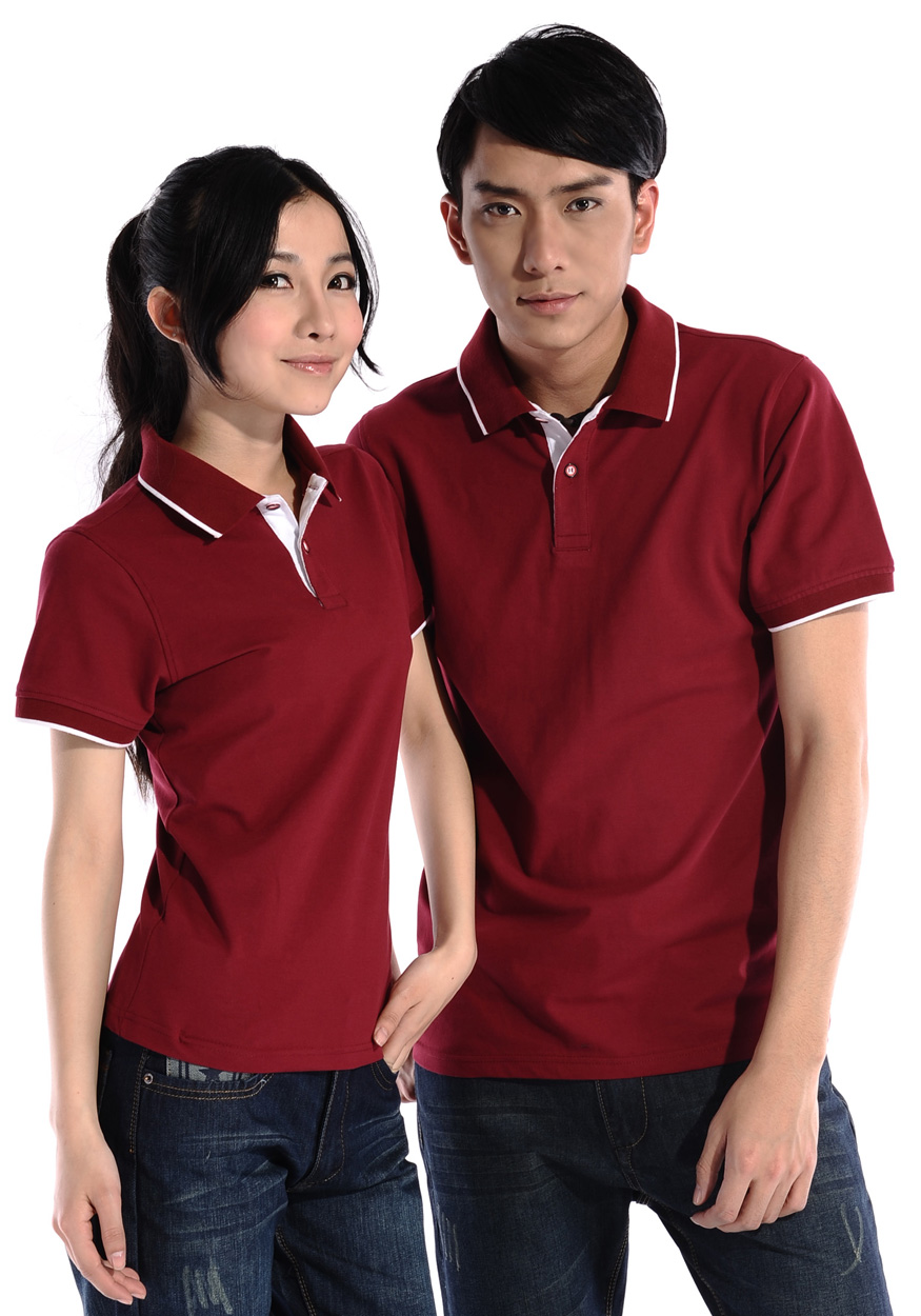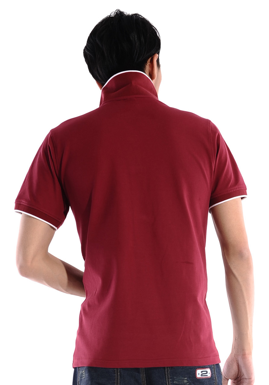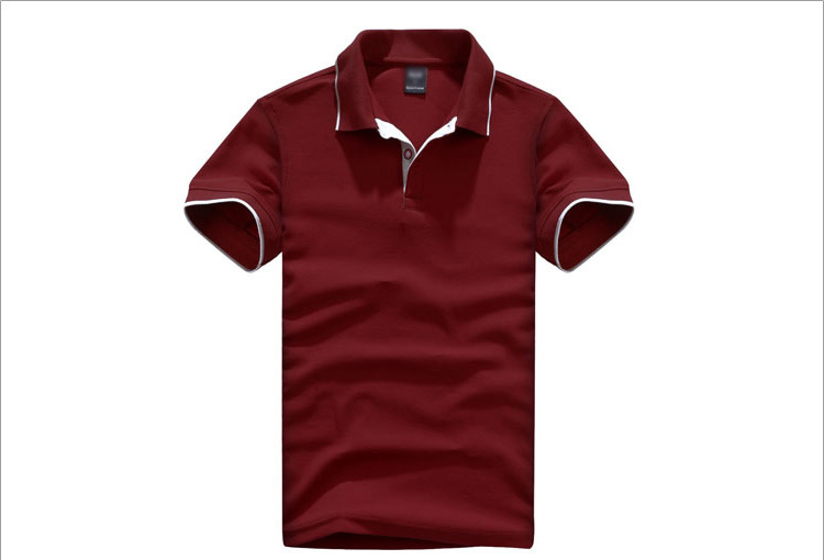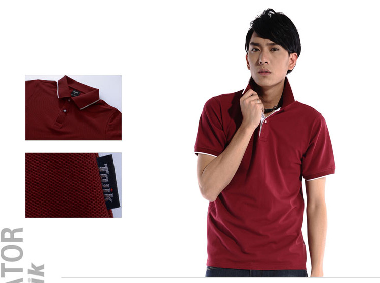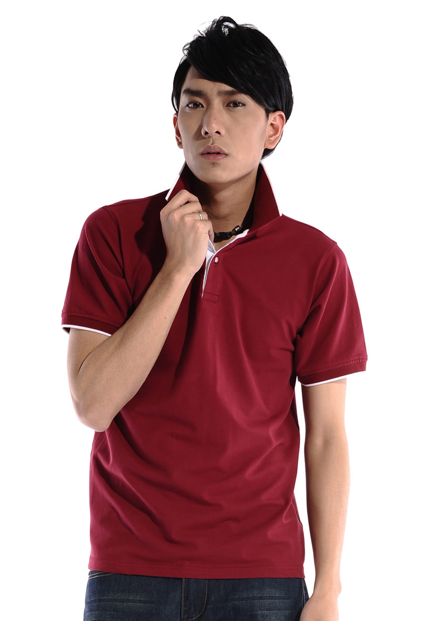 > 棗紅色珠地純棉POLO衫,領(lǐng)袖白色間條撞色,男女時(shí)尚款式 1