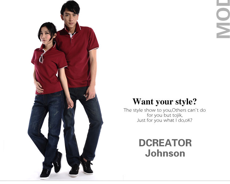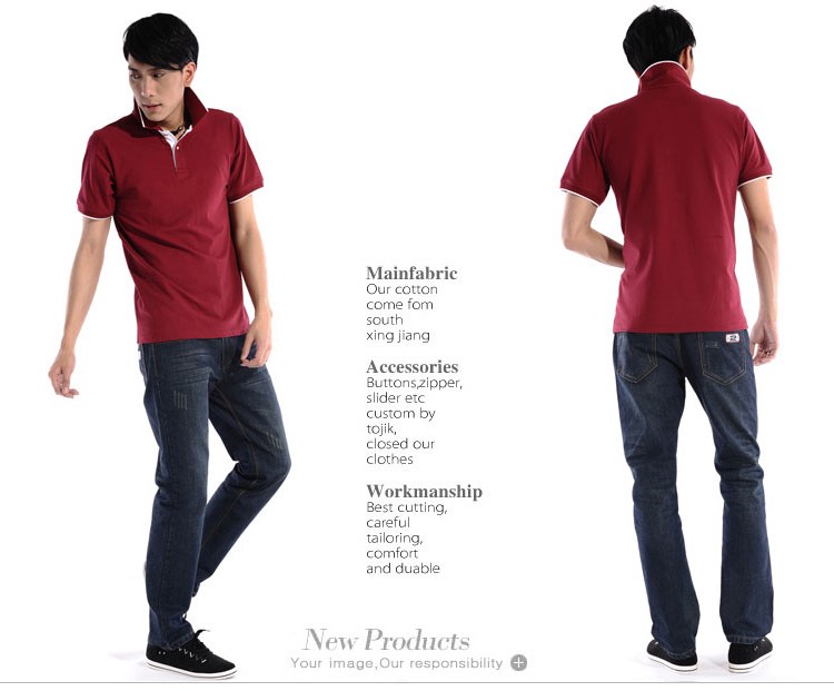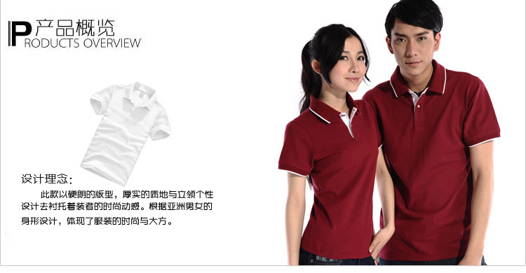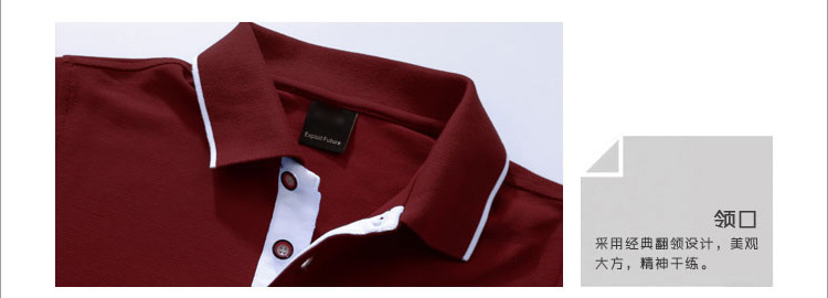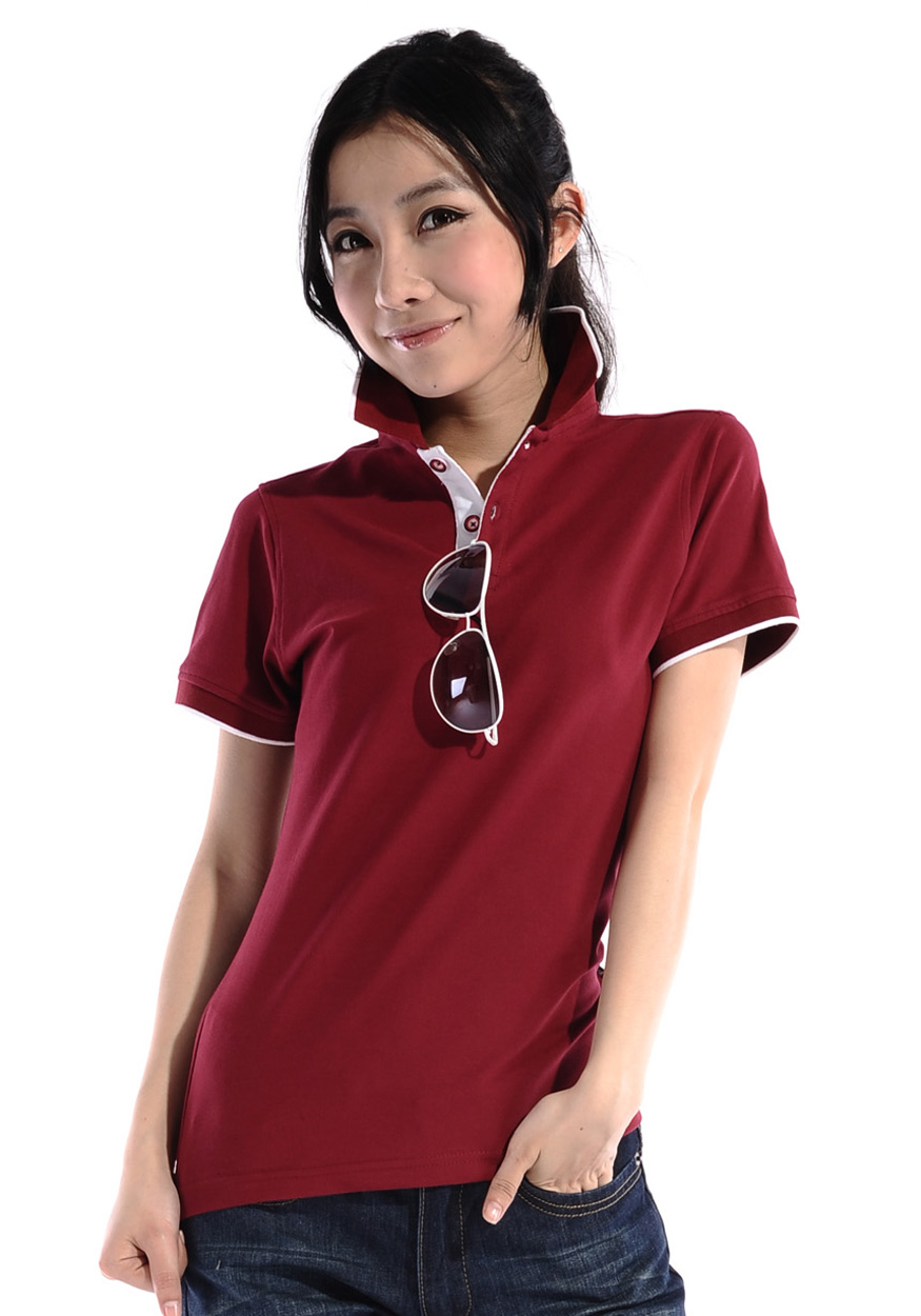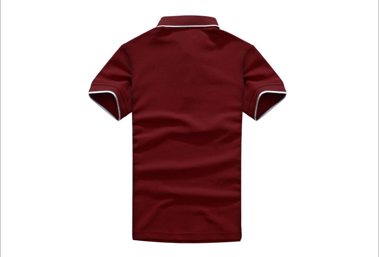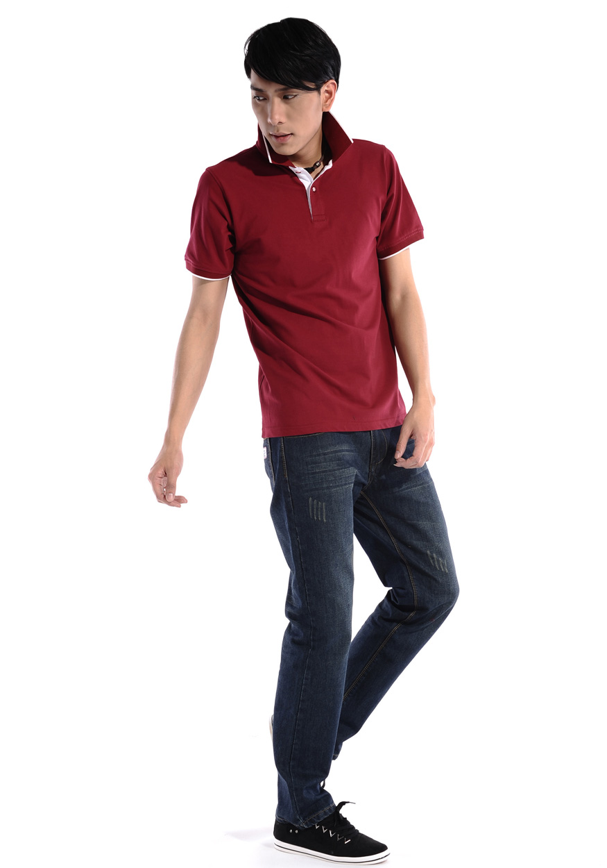 > 棗紅色珠地純棉POLO衫,領(lǐng)袖白色間條撞色,男女時(shí)尚款式 1