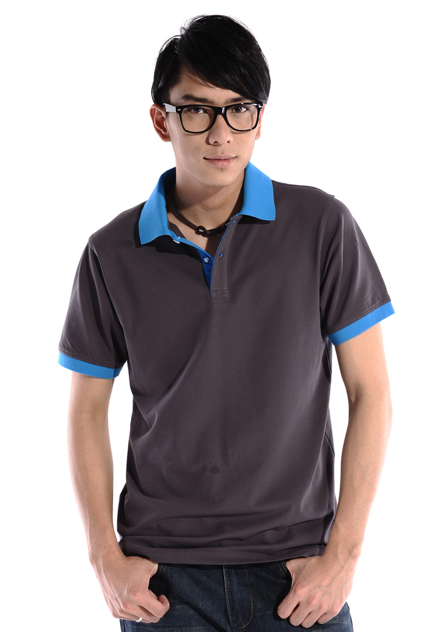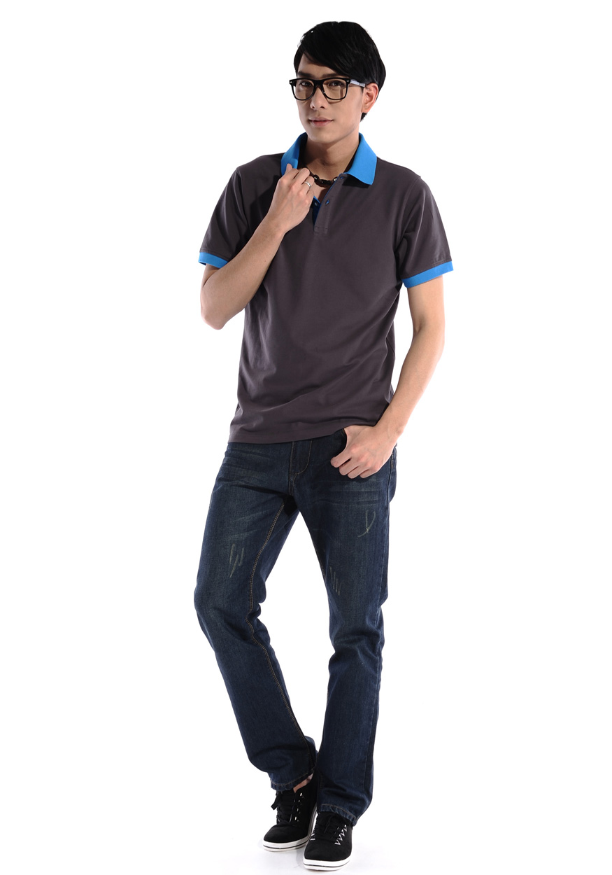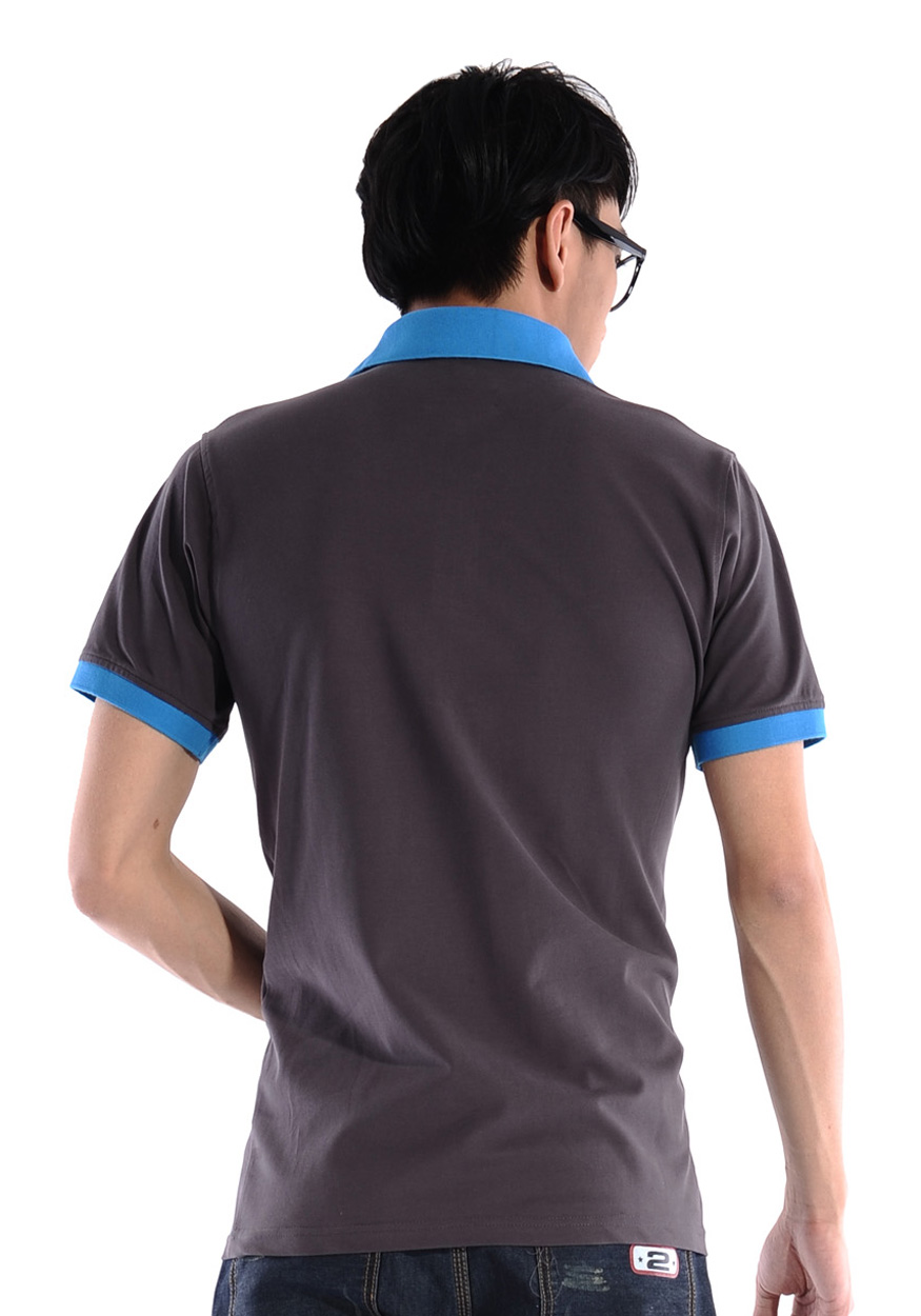 花灰色衣領袖口撞色,翻領短袖T恤衫,時尚款式定制,精梭純棉品質(zhì)
