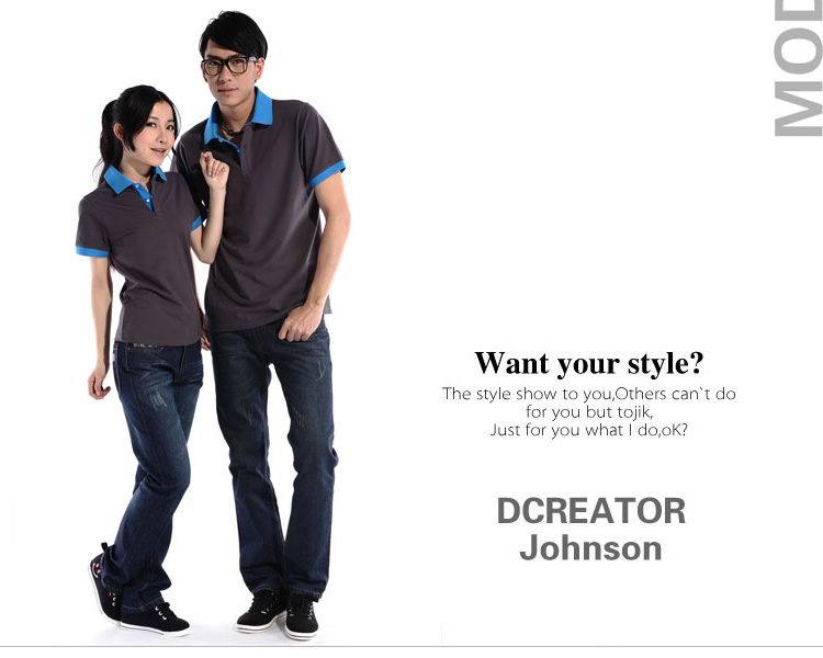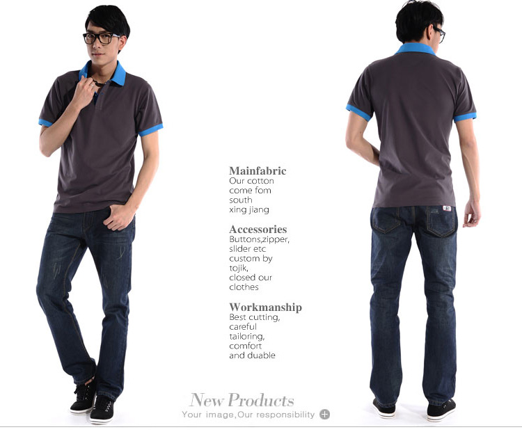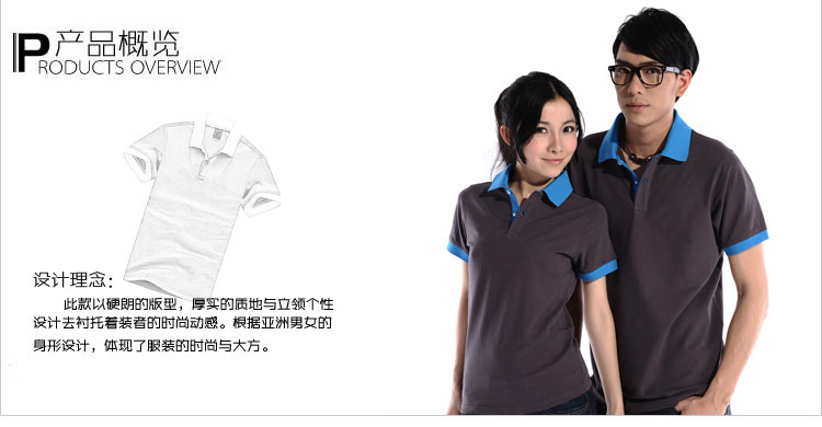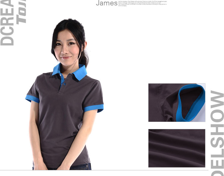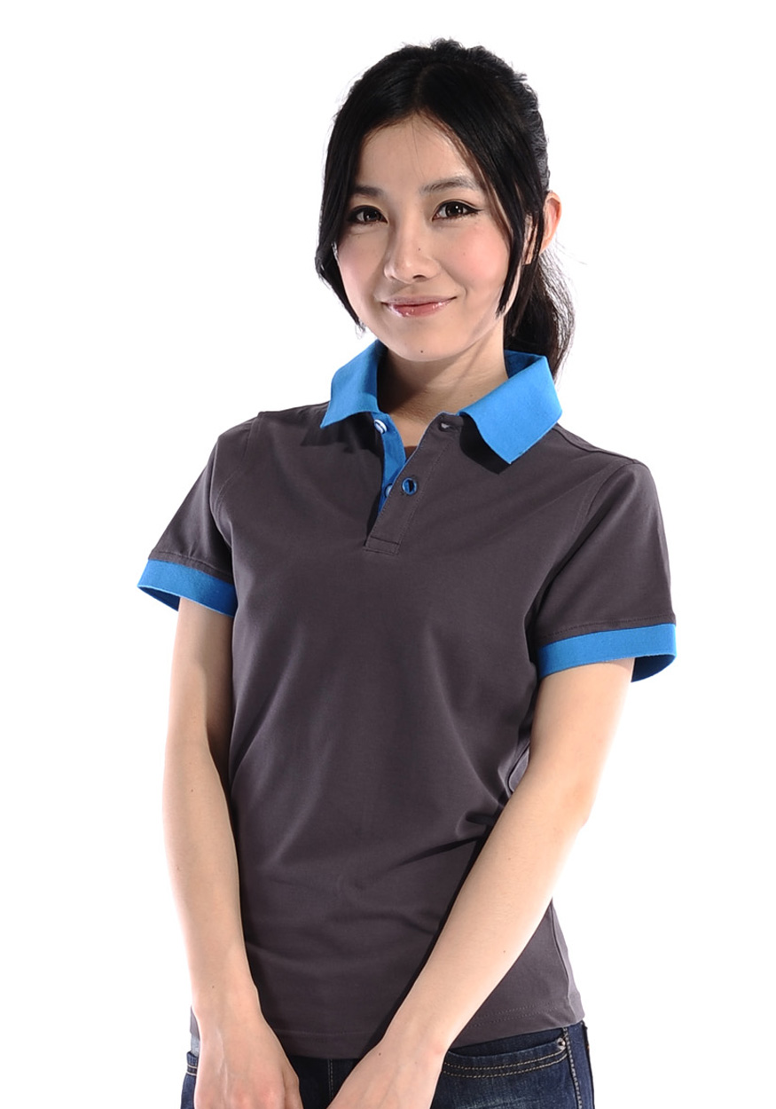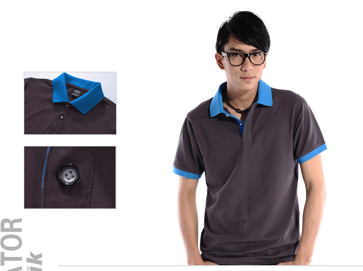 花灰色衣領袖口撞色,翻領短袖T恤衫,時尚款式定制,精梭純棉品質(zhì)