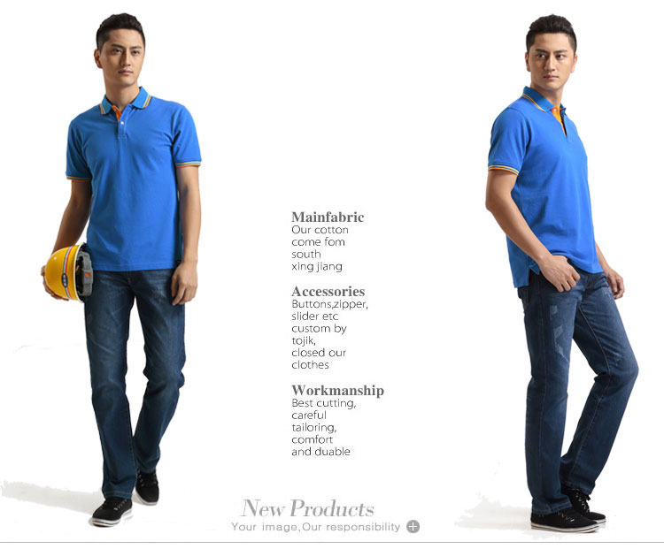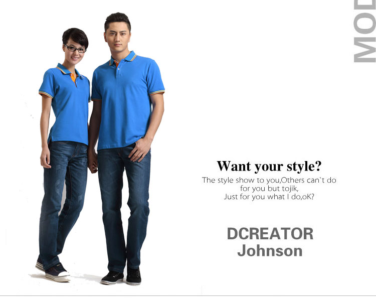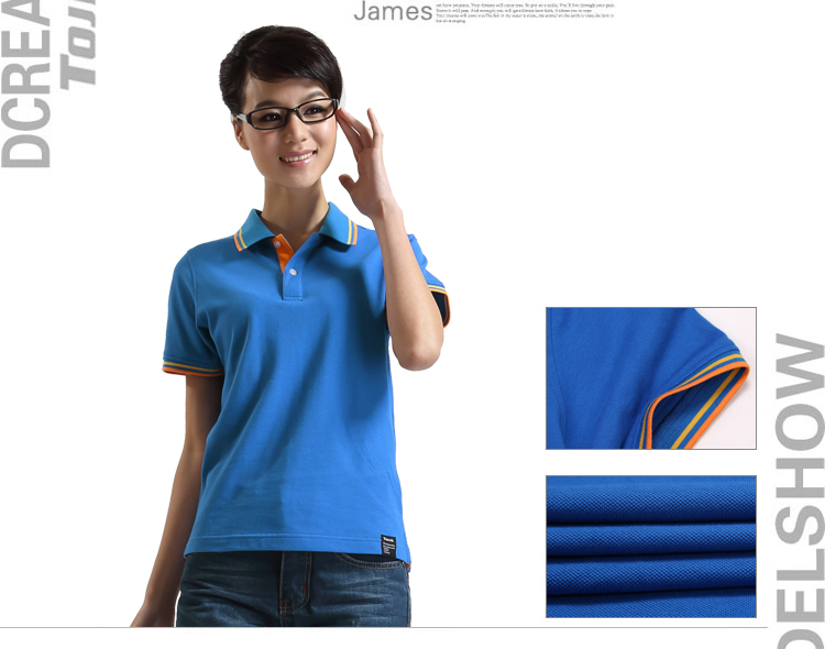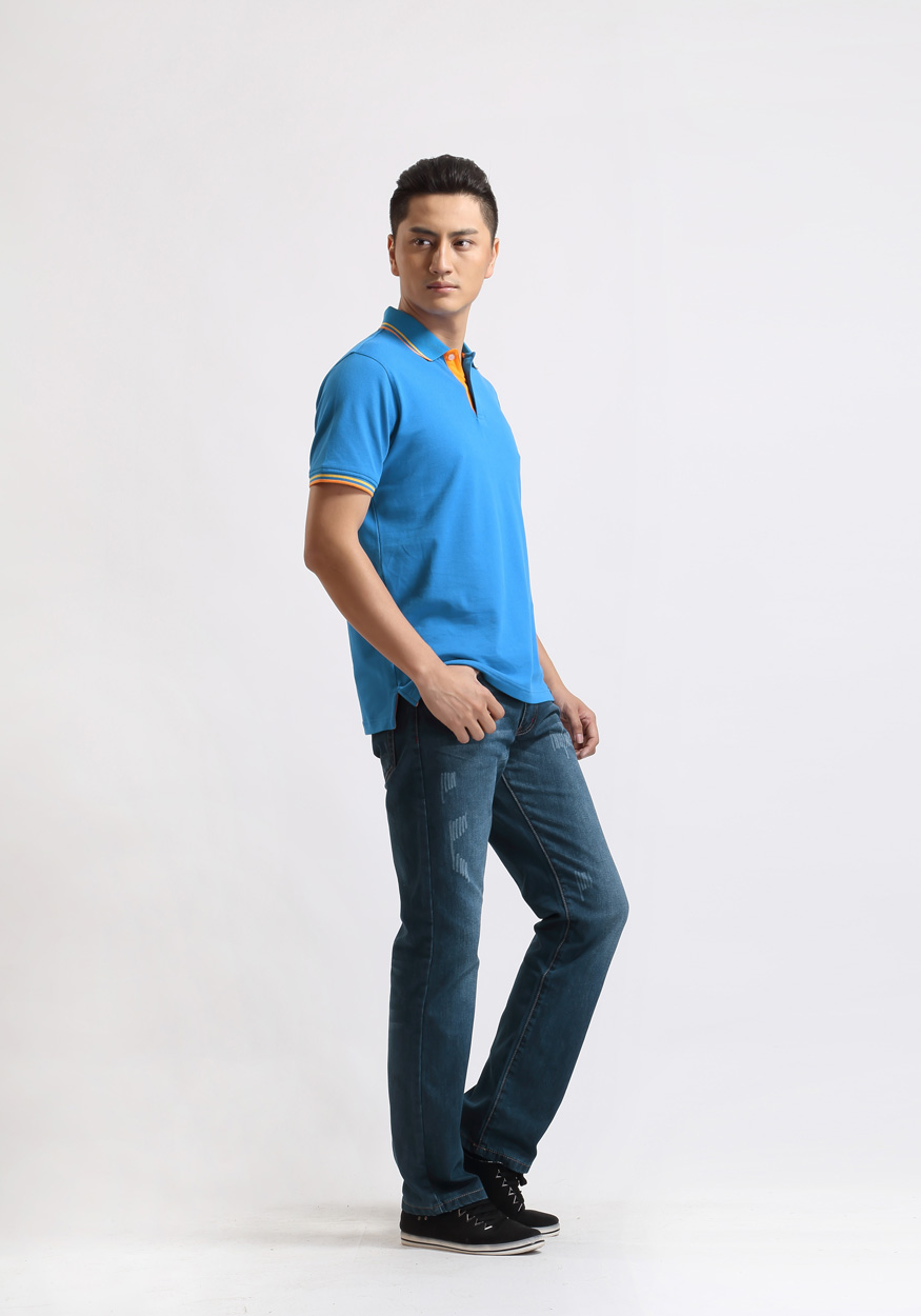 天藍色珠地棉T恤衫,領袖撞白色,男女時尚款定做 1