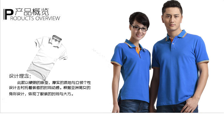 白色領袖撞色,男女時尚T恤款式定制,可刺繡公司標志
