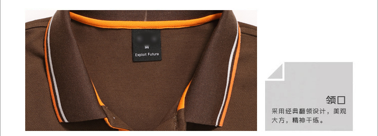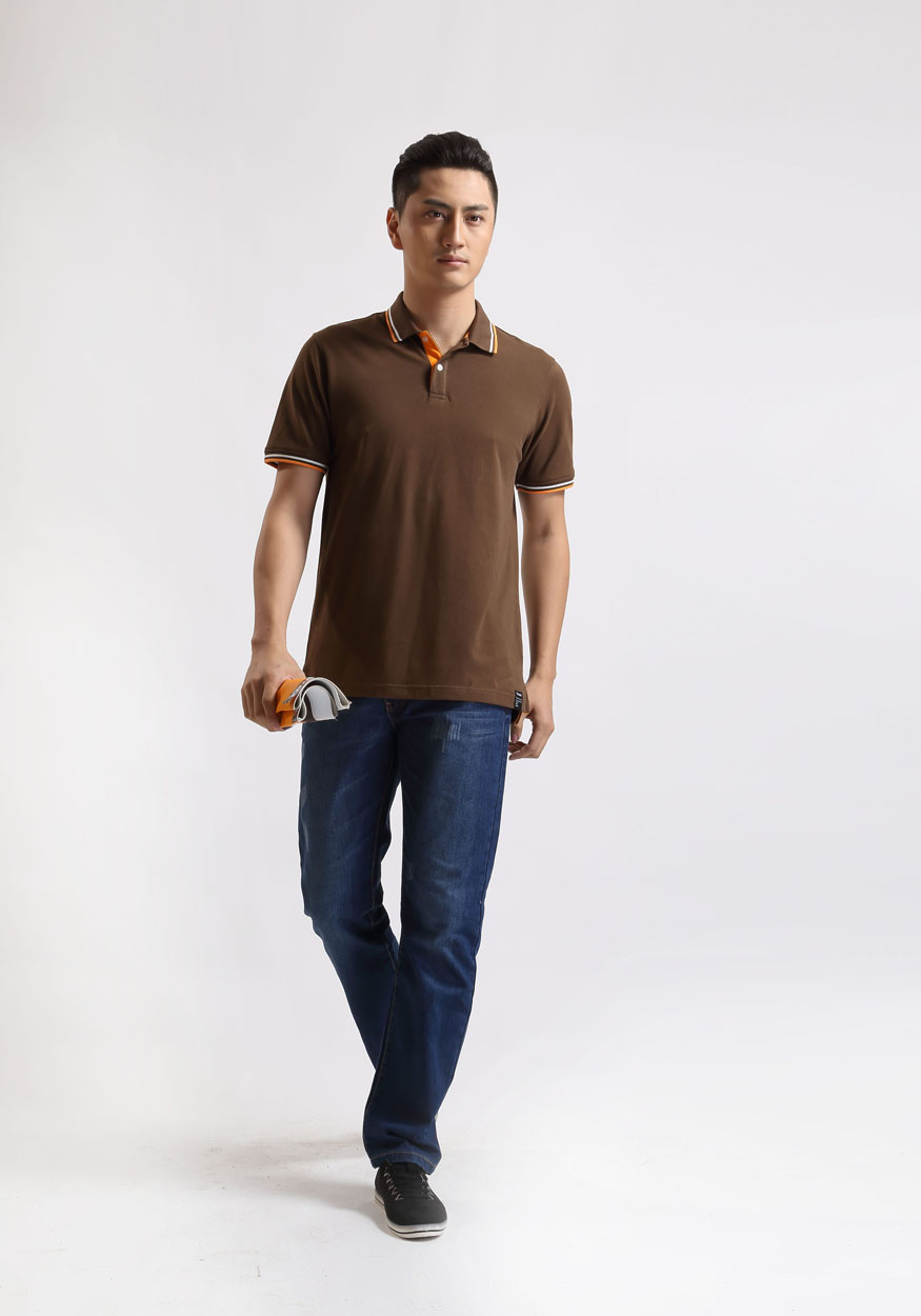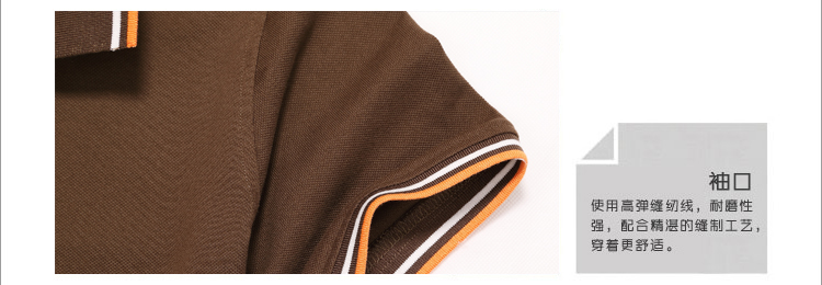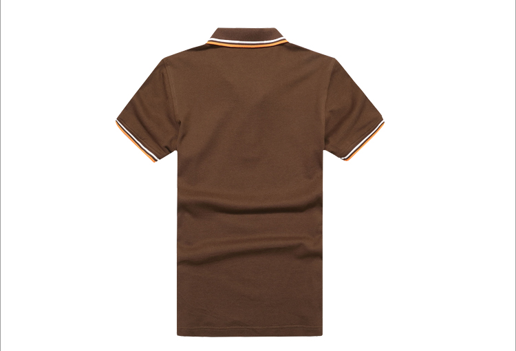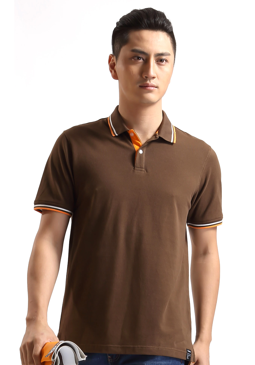 > 咖啡色珠地純棉POLO衫,領袖間條撞色,男女時尚t恤衫制作