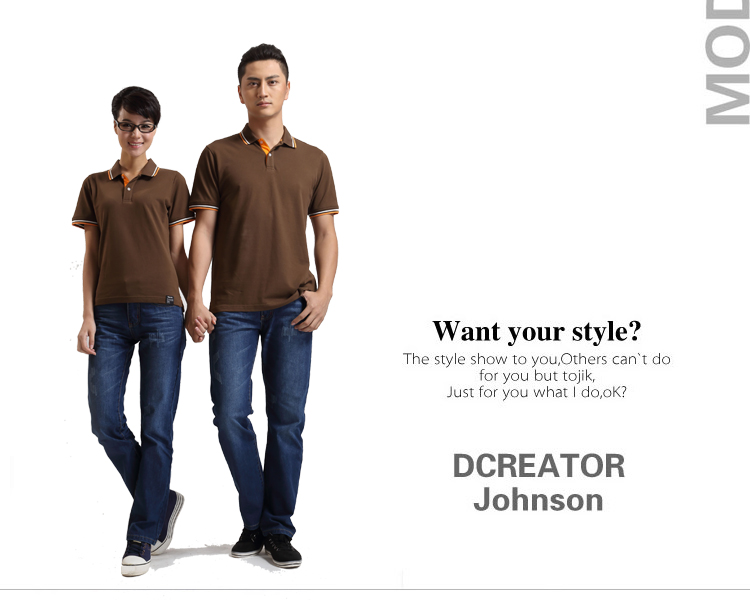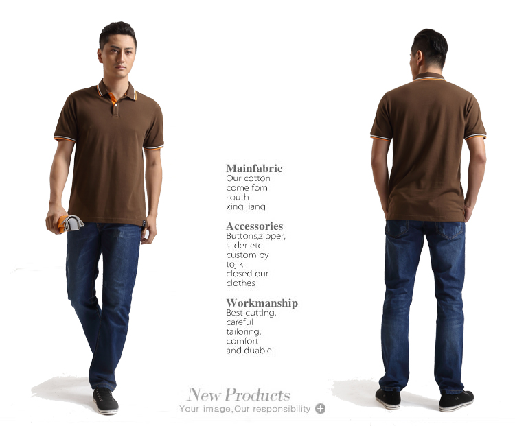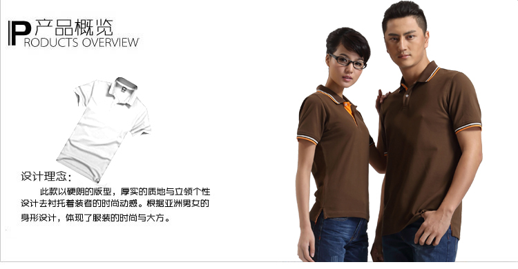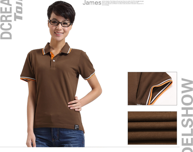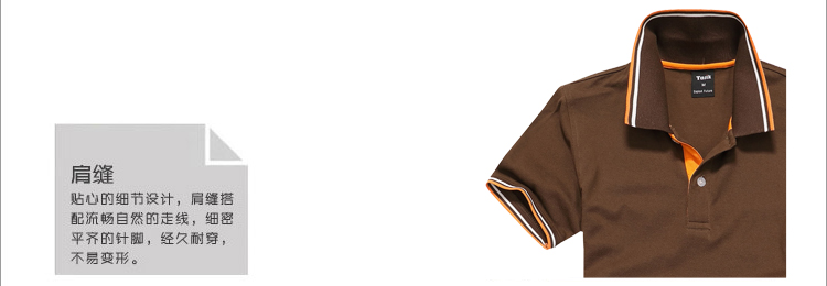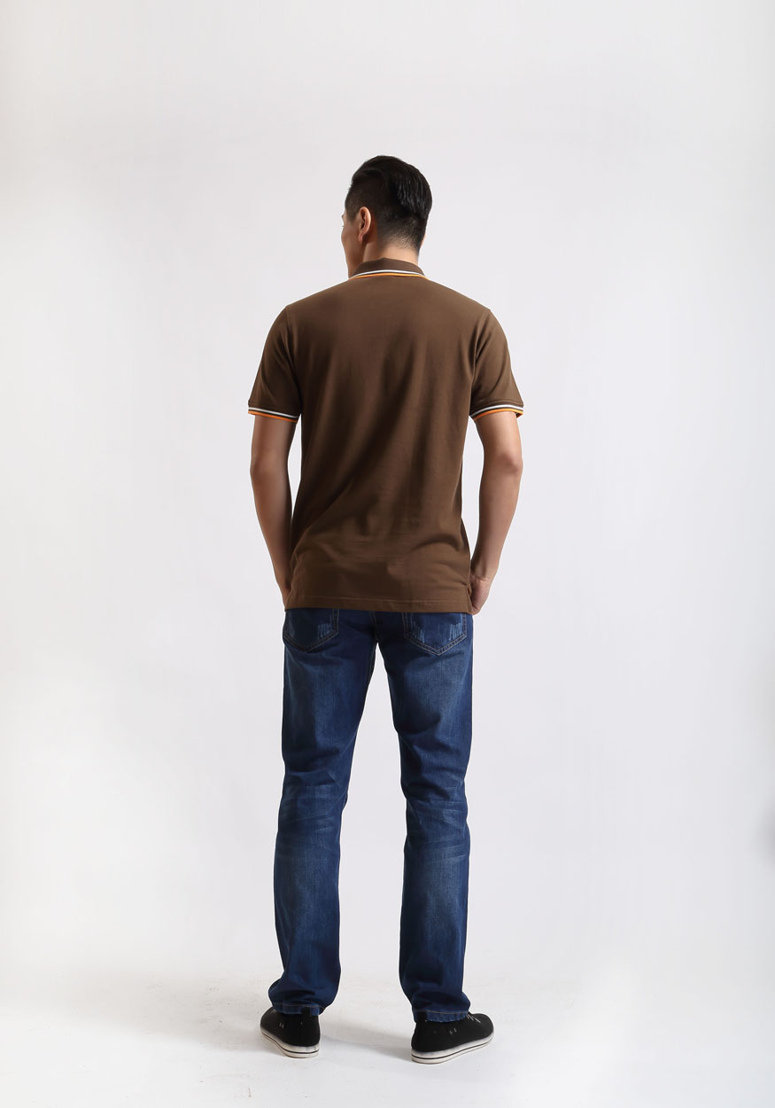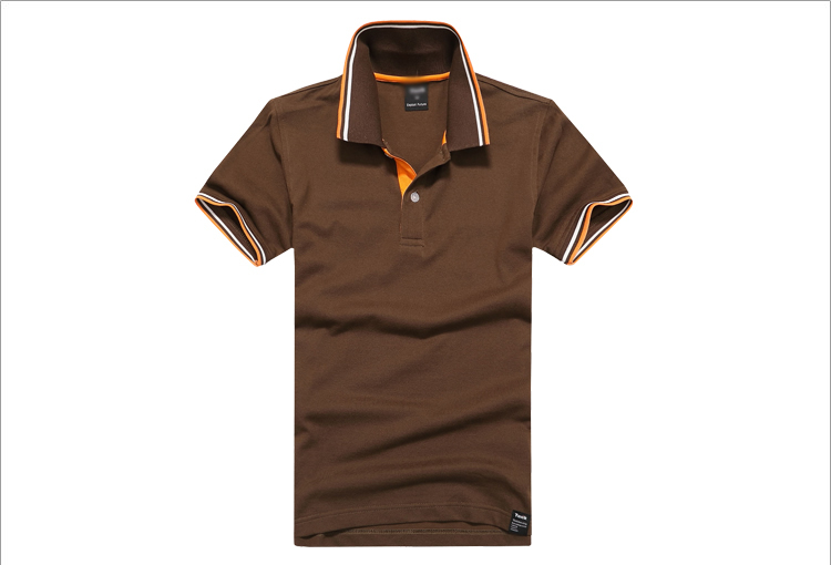 > 咖啡色珠地純棉POLO衫,領袖間條撞色,男女時尚t恤衫制作