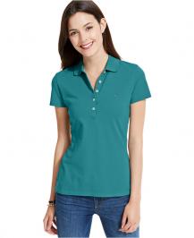 【定制】湖綠色女士翻領短袖T恤衫,時尚款式制作