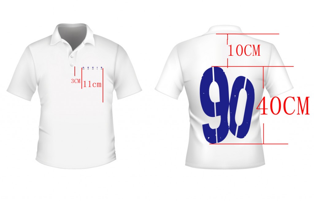 如上面兩種圖;客戶在進行T恤定做之前就已經確認好大小及位置,我們根據客戶所給的數值做出了一個效果圖標明好位置及大小,出的大貨基本上與客戶要求的相差無幾。客戶給的圖案均是矢量圖,且圖案顏色比較單一,所以我們的印刷工藝就是絲網印了。