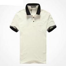 白色男款時(shí)尚t恤衫 翻領(lǐng)短袖珠地棉印制