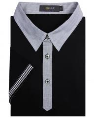 男士翻領(lǐng)短袖黑色純棉T恤衫 時(shí)尚款式設(shè)計(jì)制作