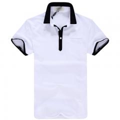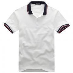 白色男款短袖精梭棉POLO衫 領(lǐng)袖撞色款式制作