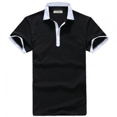 黑色男款短袖POLO衫 領(lǐng)袖撞色時(shí)尚款式制作