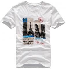 白色男款時(shí)尚印花圖T恤衫訂購(gòu)制作