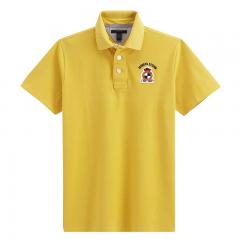 黃色男款全棉翻領短袖T恤衫加工印制