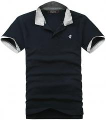 藏青色男款短袖POLO衫 領袖撞色時尚款式定做
