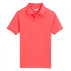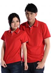 大紅色珠地純棉POLO衫,領(lǐng)袖間條撞色,門襟撞色男女款定制