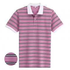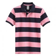 【定制】淡紅色細(xì)條紋POLO衫 男士翻領(lǐng)短袖加工訂制