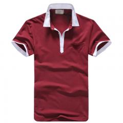 紅色男款短袖POLO衫加工設計 精梭棉材質