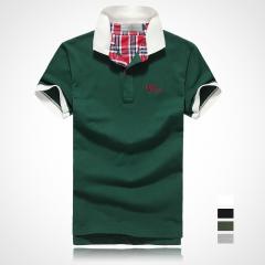 綠色男款短袖精梭棉T恤衫 雙領時尚款式定做
