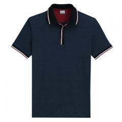 藏青色男款短袖POLO衫 領袖撞色時尚款式定做
